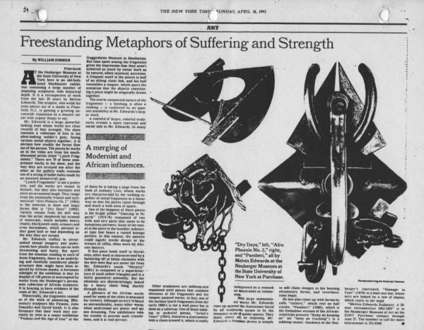 The New York TimesMay 23, 1993 During the last 30 years, Melvin Edwards has put together a compelling body of work that deserves to be better... -